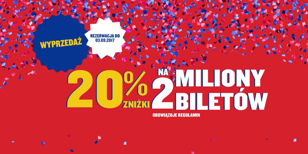 “Lato się kończy, czas więc planować zimowe wyjazdy. Dziś ogłosiliśmy wielką wyprzedaż wprowadzając do sprzedaży ponad 2 miliony biletów z 20% zniżką. Promocja dotyczy lotów w terminie 1 listopada – 15 grudnia 2017 r. oraz 8 – 31 stycznia 2018r. Oferta jest ważna jedynie do niedzieli 3 września do północy. Aby zdążyć z rezerwacją najlepiej wejść na stronę Ryanair.com już teraz.”