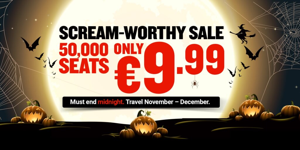 “We have launched another sale but this one will make you jump out of your seat, offering fares at €9.99 across 50,000 seats for travel during Dec. Customers can book these terrifyingly good fares until midnight 31st October for travel during the last two months of 2020.