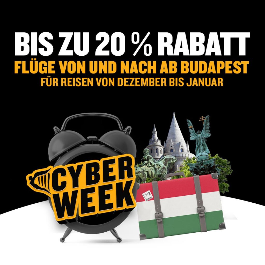 “Es ist Tag vier unseres aufregenden ‚Cyber Week‘-Sitzverkaufs und wir haben auf all unsere Flüge nach Budapest zwischen Dezember und Januar 20 Prozent Rabatt gesetzt. Das Angebot gilt nur noch bis Mitternacht.