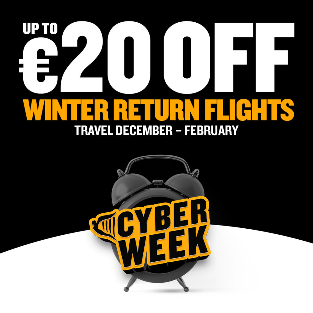 “It’s Day 4 of our exciting ‘Cyber Week’ seat sale and we have slashed up to €20 off return flights for travel from December to February, which are only available until midnight tonight (23:59hrs Wednesday).