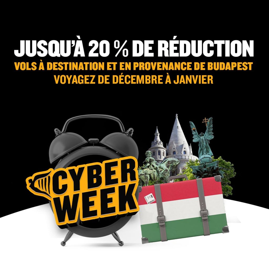 “C’est le quatrième jour de notre incroyable offre pour la “Cyber Week” et nous avons réduit de 20% les tarifs de nos vols à destination de Budapest pour voyager en décembre et en janvier, uniquement disponibles jusqu’à minuit ce soir (23h59 mercredi).
