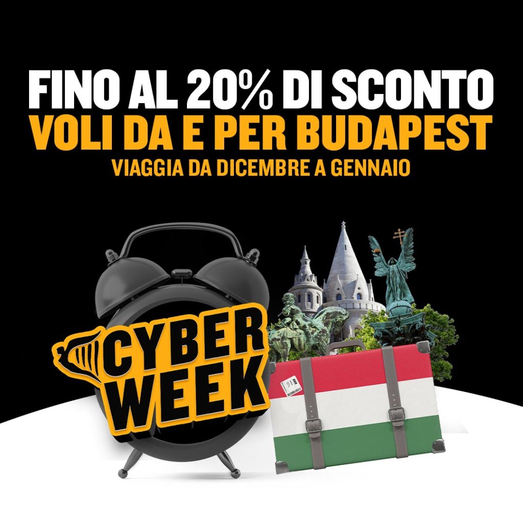 “È il quarto giorno della nostra straordinaria “Cyber Week” e proponiamo sconti del 20% sui nostri voli su Budapest per i viaggi a dicembre e gennaio, disponibili solo fino alla mezzanotte di questa sera (ovvero entro le 23:59 di mercoledì)