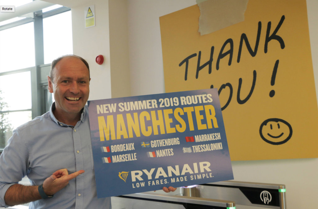 Η Ryanair, η Νο.1 αεροπορική εταιρία της Ευρώπης, σήμερα (28 Σεπ) ανακοίνωσε νέο δρομολόγιο από τη Θεσσαλονίκη προς το Μάντσεστερ, με συχνότητα 2 πτήσεων εβδομαδιαίως από τον Απρίλιο του 2019, ως μέρος τους καλοκαιρινού προγράμματος της Ryanair για το καλοκαίρι του 2019.
