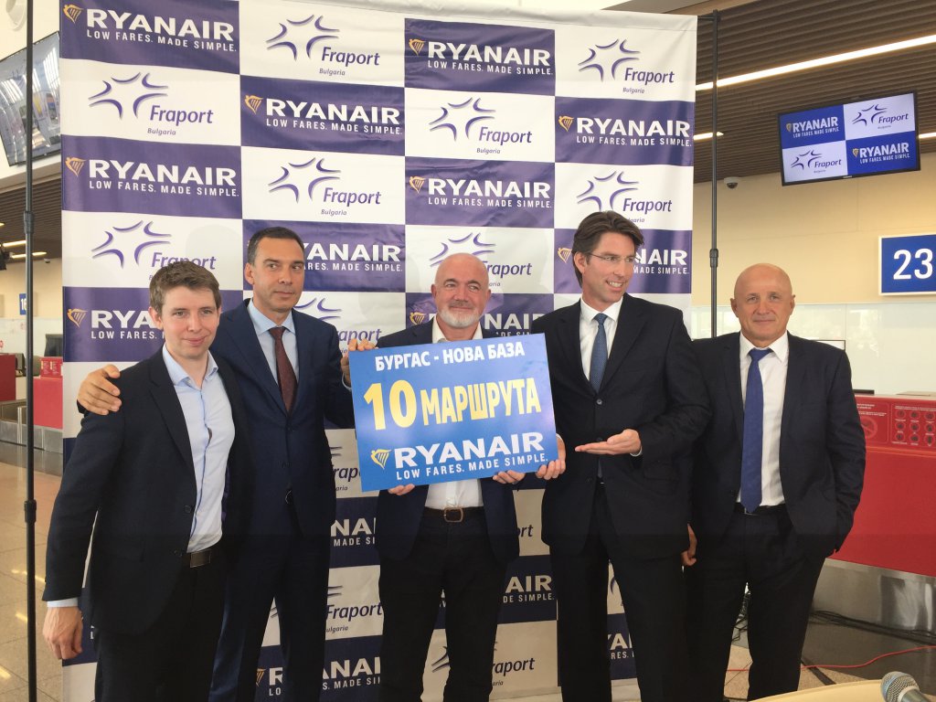 Ryanair, авиокомпания номер 1 в Европа, обяви днес (19 септември), че ще отвори нова база в Бургас (№ 87) от края на март с 1 самолет (инвестиция от 100 млн. долара) и 10 нови маршрута, които ще обслужват над 250 000 клиенти годишно и поддържат 200 работни места на летище Бургас, тяхната втора българска база.