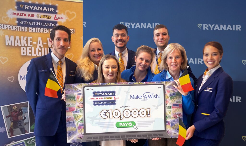 Ryanair, la première compagnie aérienne européenne, a fait don aujourd’hui (15 mars) de 10 000 € à son partenaire caritatif de longue date en matière de cartes à gratter, Make-A-Wish Belgium, afin de soutenir l’association caritative dans la réalisation des souhaits d’enfants souffrant de maladies potentiellement mortelles. Ryanair travaille fièrement avec Make-A-Wish Belgium par le biais de son programme de cartes à gratter depuis 2019 et, avec le soutien de ses généreux clients, a collecté à ce jour plus de 20 000€ pour l’association caritative.