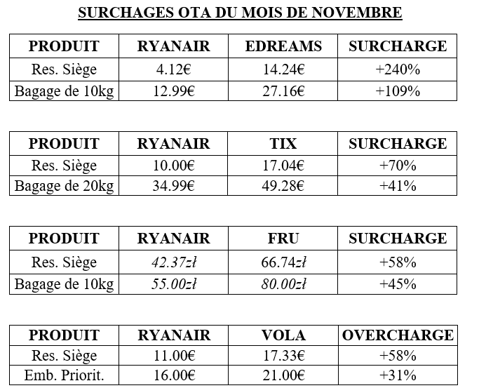 L’ENQUÊTE RYANAIR DE NOVEMBRE SUR LES OTA RÉVÈLE QU’EDREAMS, TIX, FRU ET VOLA FONT PAYER AUX CONSOMMATEURS JUSQU’À 3 FOIS (+240 %) LES TARIFS DE RYANAIR