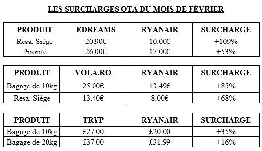SURCHARGES OTA DE JANVIER
