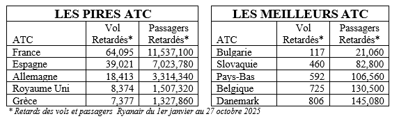 LA LIGUE DES RETARDS ATC D’OCTOBRE MONTREQUE LA FRANCE, L’ESPAGNE, L’ALLEMAGNE ET LE ROYAUME-UNI SONT LES PIRES ATC D’EUROPE33 MILLIONS DE PASSAGERS AFFECTÉS EN 2025 PAR LA MAUVAISE GESTION DU TRAFIC AÉRIEN ET DES PÉNURIES DE PERSONNEL