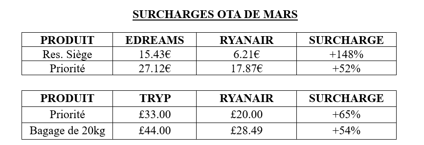 L’ENQUÊTE OTA DE RYANAIR DE MARS MONTRE QU’EDREAMS ET TRYP FACTURENT AUX CONSOMMATEURS PLUS DU DOUBLE DES TARIFS DE RYANAIR